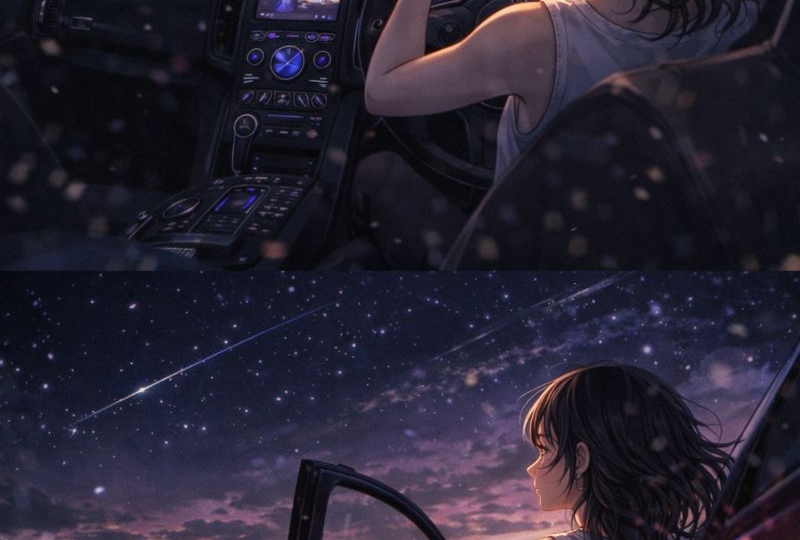 ハンドルを握る。息苦しいあの部屋の空気も、頭の痛い問題も、全部うしろに飛んでいけ。アクセルを踏み込むほどに、心は軽くなる。オレンジ色の光が続くトンネルは、まるで異世界への入り口。テールランプは無数の流れ星。ここは私だけのプラネタリウムだ。行き先なんてない。このままどこまでも走っていたい。潮の香りがするパーキングエリアで一人、遠くの光を眺める。世界はこんなに静かで、綺麗だったんだ。夜が明けたら、またあの窮屈な日常に戻る。でも、この夜のドライブが、私に明日を生きる力をくれる。