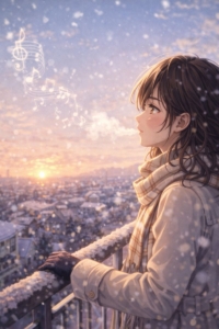冬の間に育んだ秘密の恋が、春の訪れと共に光の中へ…希望に満ちた、卒業ソングのような感動的なバラードです。森高千里さんのような、前向きな力強さを感じてください。長い冬を越えたすべての恋人たちへ。 窓辺に置かれた スノードー..